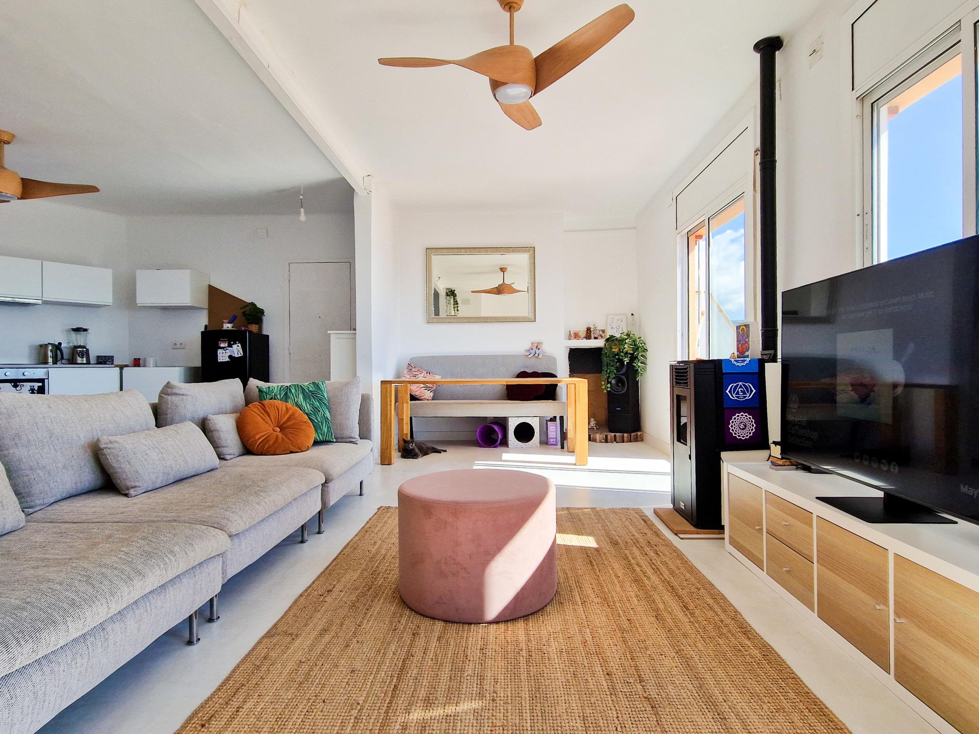 Cuenta con una superficie de 93m2 construidos (62m2 útiles) y está distribuido de una manera muy minimalista, con estancias abiertas que aportan mucha amplitud, mucha luz y aprovecha el auténtico cuadro que proporciona el mar, este, se disfruta desde todas las estancias de la vivienda.